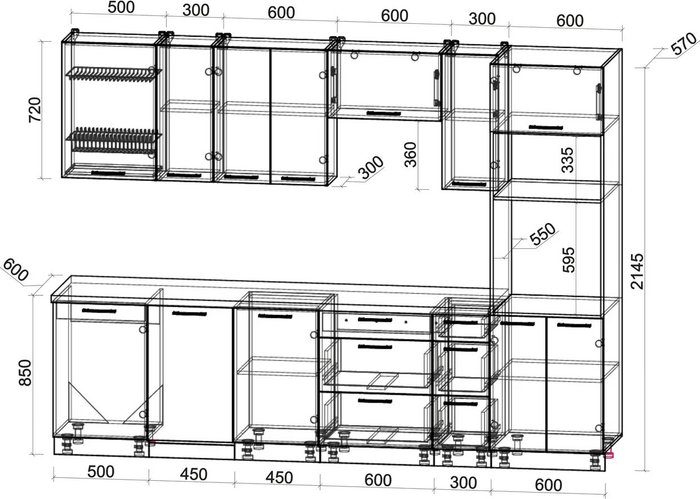 - Высота нижних шкафов 85 см