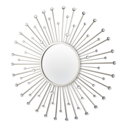 Декоративное настенное панно с зеркалом, в обрамлении из металлических стержней и прозрачных акриловых кристаллов, тонировано в цвет матовое серебро.