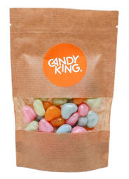 - Состав: Cахар, глюкозный сироп, вода, модифицированный кукурузный крахмал, кислоты (E270, E330, E296), глазирователи (E901, E903, E904), ароматизаторы, овощные концентраты (спирулин, сафлор), кокосовое масло, красители (E100, E120, E171).