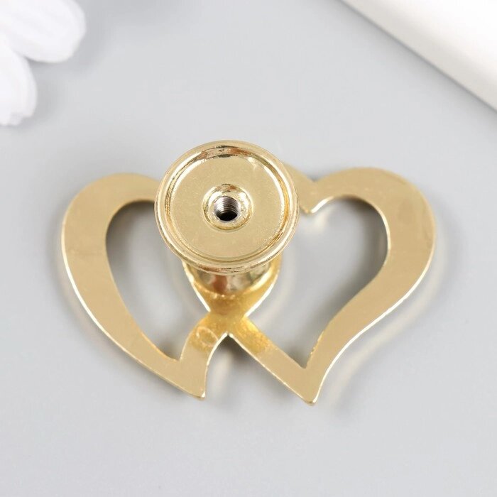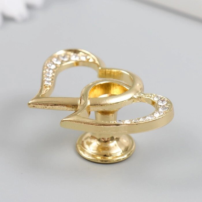 Ручка для шкатулки металл "Два сердца" стразы, золото 3,8х5,4х2,4 см